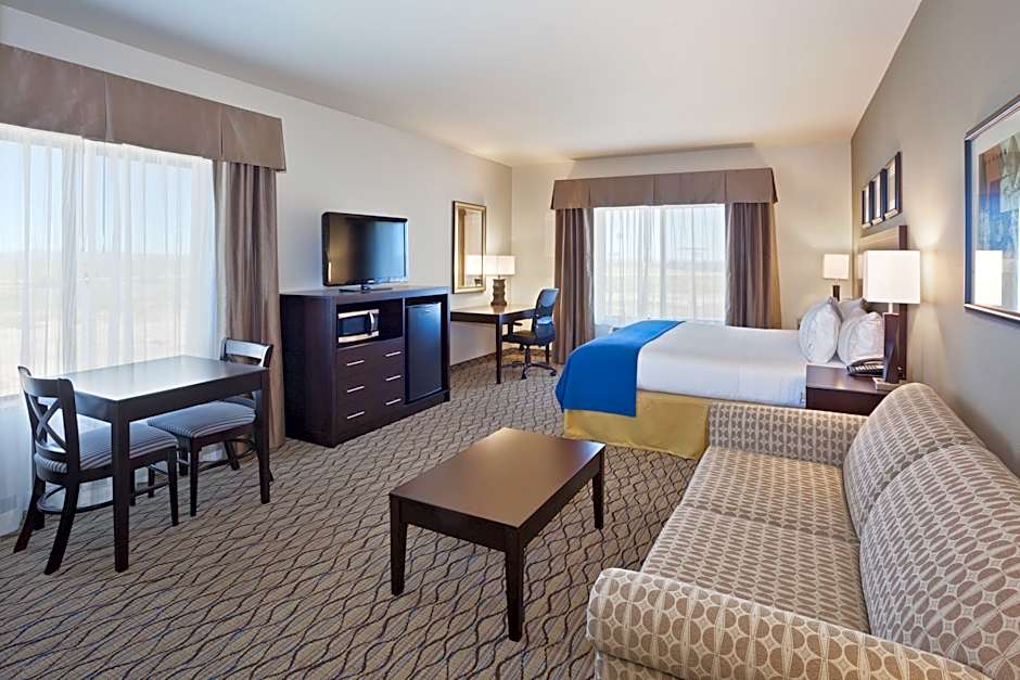 A seating area with flat-screen HD cable TV, microwave, compact fridge and coffee machine are included in this room.